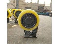 滾輪罐耳是組合鋼罐道導向裝置,滾輪罐耳主要由滾輪、支架、彈簧緩沖裝置、底座等組成。彈簧緩沖裝置由調節套、調節螺桿、螺母、碟簧軸、導向套、并帽、緊定螺釘、碟簧、平鍵、缸筒等組成。