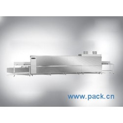 2、本機由減速機通過一對鏈輪運動,人工將碗碟插入輸送帶,碗碟首先進入循環溫洗滌水區,由上下兩排噴嘴洗滌水進行沖洗 ,接著進入熱水循環沖洗區,由上下兩排噴嘴洗滌水進行沖洗,*后,進入高溫沖洗的漂洗區進行沖洗,洗凈的碗碟由人工從輸送帶上取出。
