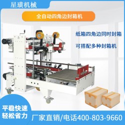 自動角邊封箱機人工調節紙箱大小規格,自動同時四個角邊封封箱;操作簡單、使用方便、容易調整、封箱速度快、效率高、堅固耐用,適合配套自動化后道包裝流水線全天候大量使用。采用特殊設計,膠帶粘貼,撫平,整齊美觀。用印字膠帶,更可提高新產品形象。廣泛應用在家用電器、紡織、食品、百貨、醫藥、化工等行業。可與自動封箱機配套使用,完成“工”字型封箱。