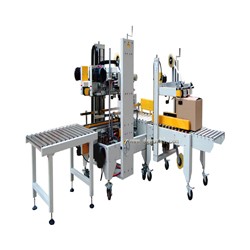 工字型封箱機是由自動折蓋封箱機與自動角邊封箱機結合工作,紙箱上蓋自動折合,上下面自動封箱同時完成四邊角封箱。工作效率快自動化程度高,整個工作一氣呵成不需人工配合,封箱美觀、快速、節省人力、效率高