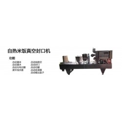 自熱米飯真空封口機適用于各種米飯盒等產品的生產,具有自動灌米、自動灌水、自動光電對膜、紫外線殺菌、自動抽真空、自動封口、自動切膜、自動收廢膜和自動輸出盒子等功能。整機克采用可編程邏輯控制器、觸摸屏、氣動控制元件、智能數顯溫度控制系統,具有封口整齊美觀,盒子衛生,故障率低等特點,是餐飲企業自動化生產的選產品。