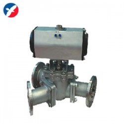 氣動Y型三通球閥有相互成120°和兩通孔成135°,根據需要可實現對介質流向切換兩種工況。