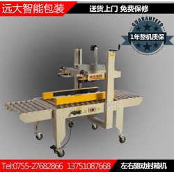 YD-6050上下驅動封箱機是以BOPP膠紙為封箱材料,對紙箱進行上下“一”字型封箱,紙箱尺寸變動時需由人工調節尺寸,僅需1分鐘即可完成。兩側馬達驅動皮帶自動校正、輸送紙箱,封箱時快速平穩,適用于較重較寬紙箱。兩側輔助輪協助機器封箱時中縫集中不開裂。臺面高度、紙箱寬度高度可自主調節,簡單實用。造型典雅大方,配備刀片防護裝置,避免操作時意外刺傷。機件穩固耐用,使用壽命長。機身自帶四個高強度剎車輪,換位工作非常方便。