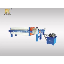 結構特點:自動保壓壓濾機是采用液壓裝置作為壓緊、松開濾板的動力機構,采用電接點壓力表設定油缸壓力,當油缸達到設定壓力時電機自動停止運轉,單向閥自鎖回油起自動保壓作用。此結構操作簡單、安全、省力,操作通過控制板上的按鈕,實現連續動作,其中配有多種安全裝置和附屬功能,確保操作人員安全。