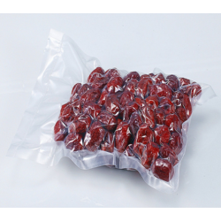 真空袋裝上產品后,抽空袋內空氣,保有食品原有的純正的味道,它具有金屬的阻隔性,又彌補了金屬易受酸、堿、硫等腐蝕的不足,既有玻璃的透明度,又克服玻璃易碎的缺點,既有紙張的輕便性,又彌補了紙張易受潮的缺陷,更具備各種塑料薄膜的所有功能。應用于各種生食熟食的保存。