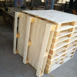 目前國內木制托盤的材料主要有松雜木,松木,硬雜木,不同的材料代表托盤的不同使用性能。歐洲托盤標準中明確規定不能使用白楊木。木制托盤進行干燥定型處理,減少水分,消除內應力,然后進行切割、刨光、斷頭、抽邊、砂光等精整加工處理而形成型材板塊,采用具有防脫功能的射釘(個別情況采用螺母結構)將型材板塊裝訂成半成品托盤,*后進行精整,防滑處理處理。