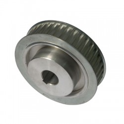 同步帶輪一般由鋼,鋁合金,鑄鐵,黃銅,等材料制造。內孔有圓孔,D形孔,錐形孔等形式。表面處理有本色氧化,發黑,鍍鋅,鍍彩鋅,高頻淬火等處理。精度等級依客戶要求而定。