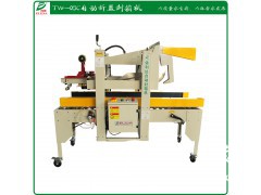 TW-05C自動折蓋封箱機/紙箱封箱機/膠帶封箱機/膠紙封箱機/自動封箱機/紙箱自動封口機:主要適用于紙箱包裝經濟快速,容易調整,可一次完成上下封箱動作,也可以與流水線配套使用、廣泛應用在家用電器、紡織、食品、百貨、醫藥、化工等行業。采用印字膠帶、更可提高產品形象。單規格紙箱適用,紙箱上蓋及后蓋自動折入,快速平壓不折角,自動折入兩側蓋平穩、美觀,側面皮帶驅動、重負荷、易操作。