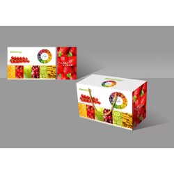 材質及工藝:水果包裝盒是由300g白卡四色印刷、覆啞膜,裱300g灰底白板。