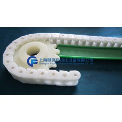 塑料鏈條寬度為20 22 30 27、43.50、53、53.2、55、57.2(mm);節距為9.525 12.7 19.05 40、50、63.5、82.5(mm);轉彎半徑為150(mm);反向轉彎半徑為50(mm)。 1米≈20節。使用潤滑劑時*高速度90米,干燥環境下*高速度45米。主要適合應用于鋁箔包裝盒,乳業塑膠瓶,利樂磚,利樂枕以及塑料箱的長距離輸送。