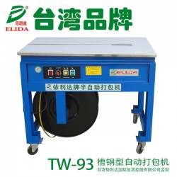 依利達TW-93槽鋼型自動打包機/佛山南海陶瓷牢固型半自動捆扎機/河源清遠地板磚加重型高臺捆包機/肇慶高要瓷磚加強型紙箱自動包裝機械/三水高明加固型衛浴潔具打包機:特制加固型,采用槽鋼作為機器支架,加厚面板,大大增加了機器的耐用性和牢固性,適合較重產品的打包。