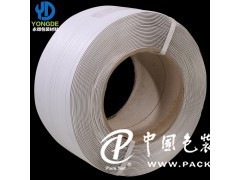 機用打包帶的制作工藝,*先是擠出機溫度控制,一般在250℃~280℃。接下來是冷卻,帶料出機頭后溫度很高,要立即進入水中冷卻,因為對等規聚丙烯在急冷的情況下容易生成醞晶結構,醞晶分子結構較疏松。容易拉伸取向,獲得高質量的產品。然后是拉伸,拉伸的目的是為了提高打包帶的縱向強度,減少伸長率。拉伸必須在沸水中進行,一般采用一次拉伸。*后是壓花,拉伸后的打包帶經過兩個帶花紋的壓輥,便被壓上花紋,其作用是在使用中增加摩擦,不打滑,從外表上看美觀大方。