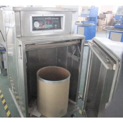該機型,真空室容積大,袋口立封形式。可連同產品外包裝(如:桶、盒)直接擱置于真空室內,完成內袋的真空封口。開門式的操作形式,便于重物擱置。