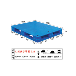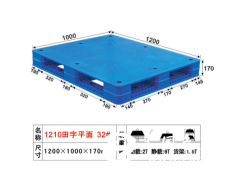 2、立體倉庫用重型防滑塑料卡板:LK-1210D川字型(含8條防滑條)四面可叉,可以使用叉車和液壓手動、電動卡板車搬運,有效提高工作效率及空間利用率。