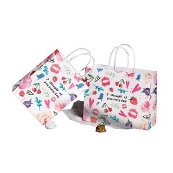 材料:200G白牛皮 工藝:4色印刷,粘白紙繩 用途:裝各種產品