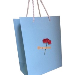 材料:250G酋長單銅 工藝:4色印刷,過啞膠,三股扭繩 用途:裝服裝,禮品等等