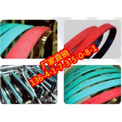 1、折頁機皮帶:常用厚度0.8mm,常用規格20mm和50mm,采用的搭接接頭具有無方向性、接頭部位平整等優點,已得到廣大用戶的認可。