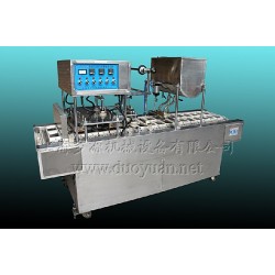 快餐盒自動灌裝封口機經過全新設計,自動放杯盒,自動灌裝,自動打碼,滅菌,抽真空,自動封口,(自動切膜)。它采用鏈條步進式傳動機構,電子控溫,自動程序控制,造型美觀,結構合理,功能齊全,操作簡便,主要部件采用不銹鋼覆蓋,符合國家衛生法的要求,適應于學生營養午餐的系列化、標準經、規模化生產。