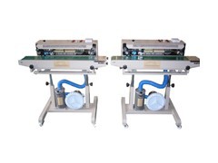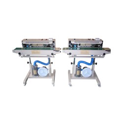 該機由機架、減速調速傳動機構,加熱散熱機構,封口印字機構,輸送裝置及電器電子控制系統等部件組成。本機主要適用于膨化食品的包裝,是在自動薄膜封口機改進自動充氣裝置后的產品,塑料薄膜經過充氣包裝后提高了抗碎性,減少食品在運輸過程的損壞。