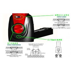 彈片式封箱針裝入設計,并具安全固定卡榫功能,使用安全又便利;