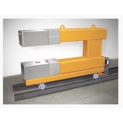 測徑儀采用軌道移動方式安裝,下線方向與軋線垂直,當測徑儀需要下線維護或檢修時,由備用過鋼小車補充過鋼導槽的空位,不影響軋線正常生產。