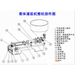 2、該灌裝機缸體、機殼、料斗均由不銹鋼316材料制成,活塞由聚四氟乙烯材料制成,氣動部分均采用臺灣“亞德客”進口氣動元件,符合GMP要求。