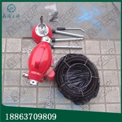 2.使用Φ16mm軟軸可用自動,使用時先將自動銷子提起卡住,軟軸從機尾插入機孔中,選擇適當dao頭裝入軟軸前端,再將軟軸伸入堵塞的管道,然后旋轉自動銷,是其落入凹槽,開動電機開關,操縱手柄,使軟軸旋轉并通過改變開關處正、反轉的檔位,使軟軸自動進退,同時一手握住軟軸施以動擊力,逐步使管道疏通。