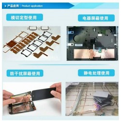 備注:1.測試條件為常溫25℃,相對濕度65℃以下采用美國ASTM-D1000所檢測之結果2.貨物保存時,請保持室內干燥通風,保存時限較長;3.產品主要用于消除電磁干擾EMI,隔離電磁波對人體的危害,主要應用于電腦周邊線材、電腦顯示器及變壓器制造商。4.分為雙面導電和 單面導電。