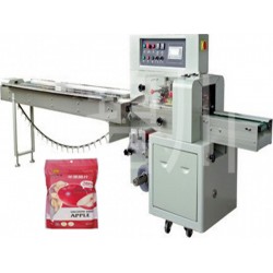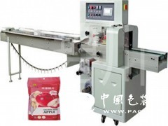 該枕式包裝機適合于薯片、花生、雪餅、餅干、餅干、蛋黃派、巧克力、面包、方便面、*、日用品、工業零件、紙盒或托盤等各類有規則物體的包裝。