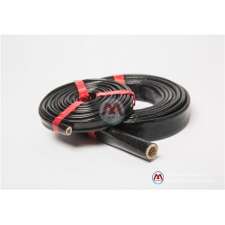 安徽鑫茂公司生產的黑色耐高溫絕緣防火套管是采用高純度無堿玻璃纖維編制成管,再在管外壁涂覆有機硅膠經硫化處理而成。硫化后可在-65°C-260°C溫度范圍內長期使用并保持其柔軟彈性性能。