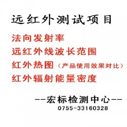 主要檢測項目:法向全發射率、紅外輻射波長范圍、紅外輻射能量密度、紅外熱圖、負離子濃度、微循環灌注改善、灰分、磁場強度、抗菌率、紅外蓄熱保暖性