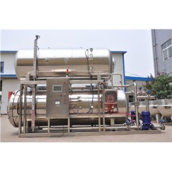 醬板鴨滅菌釜 糯米藕殺菌鍋 蒸汽殺菌鍋鍋內進入少量循環水,并采用進口高效率換熱器,包裝物在10-15分鐘內可以從20度迅速升溫至121度。