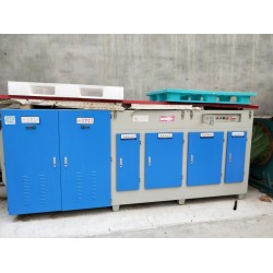 3、惡臭氣體利用排風設備輸入到本凈化設備后,凈化設備運用高能C波光束及臭氧對惡臭氣體進行協同分解氧化反應,使惡臭氣體物質其降解轉化成低分子化合物、水和二氧化碳,