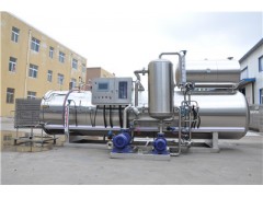1)減少蒸汽消耗,蒸汽、霧化后的殺菌水在殺菌釜內直接進行熱混合,提高升溫降溫的速度。