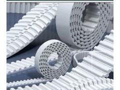 同步帶是以鋼絲繩或玻璃纖維為強力層,外覆以聚氨酯或氯丁橡膠的環形帶,帶的內周制成齒狀,使其與齒形帶輪嚙合。同步帶傳動時,傳動比準確,對軸作用力小,結構緊湊,耐油,耐磨性好,抗老化性能好,一般使用溫度-20℃―80℃,v<50m/s,P<300kw,i<10,對于要求同步的傳動也可用于低速傳動。