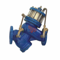 1.當水泵開啟時,水通過導管進入中腔,推動活塞上升,主閥開啟。