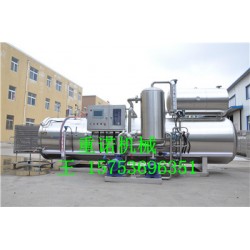全自動噴淋式殺菌鍋 - 簡介 鍋內只有少量循環水帶動空氣流動,并采用高效率換熱器,所以鍋內產品升溫速度快,傳熱均勻,一般情況下在蒸汽壓力為0.6MPA時,鍋內產品從20℃升溫到121℃約為10分鐘,更好的保持食品原有的口感和色澤。