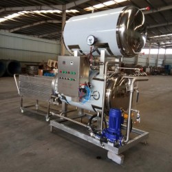 1、根據產品要求,首先要把上罐預熱到0-120℃左右(根據產品工藝可調),在預熱的同時把殺菌鍋內貨物全部裝滿,關閉鍋門,打開連鎖裝置。