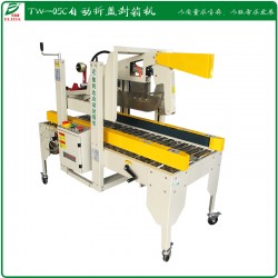 TW-05C自動折蓋封箱機,自動折入兩側蓋平穩、美觀側面皮帶驅動、重負荷、易操作;單規格紙箱適用,紙箱上蓋及后蓋自動折入,快速平壓不折角;主要適用于紙箱包裝,經濟快速,容易調整,可一次完成上下封箱動作,也可以與流水線配套使用。