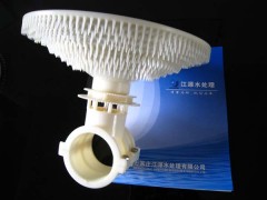 旋混動力曝氣器由ABS工程塑料、管卡、止回球、球形氣室、散流罩、不銹鋼螺栓、調節底座等組成。旋混式動力曝氣器是由多功能動態旋混芯分流圈、夾層擴散齒罩、倒齒擴散等主要部件組成。空氣由配氣管道進入曝氣器,氣流會使多功能動態旋混芯產生上下變隙運動與旋混運動,再通過分流圈的擴散內齒、夾層擴散齒罩上下齒、倒齒擴散罩對上浮運動的氣泡起多重碰撞破碎的動力擴散的作用。