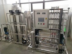 1、原水→原水增壓泵→多介質(zhì)過濾器→活性炭過濾器→軟水器→精密過濾器→反滲透系統(tǒng)→中間水箱→中間水泵→離子交換器→純化水箱→純水泵→殺菌消毒→微孔過濾器→用水點
