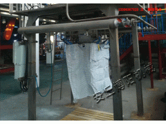 將噸包裝袋套在加料嘴上,將包裝袋四角掛在氣缸上,按動“啟動”按鈕,這時夾袋氣缸開始工作并夾住袋口,氣缸將包裝袋四角撐開,控制器將包裝袋重量自動去除,系統驅動喂料器打開,物料自動下落,以很快的速度達到目標值, 這時夾袋袋氣缸松開袋口,氣缸將包裝袋四角松開。