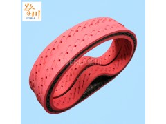 包裝機真空拉膜帶是一種橡膠材質構成的特殊同步帶,皮帶表面加紅膠,中間開槽并進行居中沖孔,我公司的橡膠同步帶加紅膠開槽打孔,該產品可廣泛應用于包裝機械等多種機械設備。