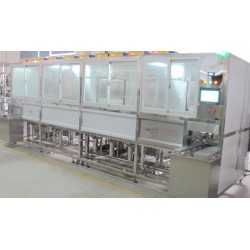 深圳威固特VGT-1009FH光學超聲波清洗機,設備共有10個功能槽,配置有噴淋系統、循環過濾系統、自動恒溫系統拋動系統、超聲波清洗系統、拋動系統、頂部框架系統、熱風烘干系統(百*FFU)、定時系統等。設備采用環保型水溶劑洗滌、純水漂洗,為環保型清洗機;