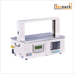 這是一部特別為輕型物品包裝,而設(shè)計(jì)的自動(dòng)束帶機(jī),使用「紙帶」或「透明膠帶」捆包,