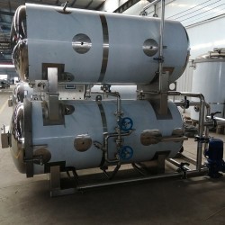 米線高溫滅菌釜 米粉不銹鋼殺菌鍋本設備通過引入壓縮空氣實現反壓殺菌。如冷卻需在鍋內進行,須用水泵打入鍋頂部的噴水管(或采用水循環系統)。在殺菌時,由于加熱使溫度升高,包裝袋內的壓力會超過袋外(在鍋內)的壓力。因此,為了避免殺菌時包裝物內增壓而損壞,必須施加反壓力,即是壓縮空氣通過鍋內增加壓力,防止包裝物損壞,其操作情況分述如下:由于壓縮空氣是不良導熱體,況蒸汽本身又具有一定的壓力,因此,在殺菌時升溫過程中,豆干菌鍋不放進壓縮空氣,而只在遇到殺菌溫度后處于保溫時,才開放壓縮空氣入鍋內,使鍋內增加0.15~0.2Mpa。待經過殺菌后,降溫冷卻時,停止供應空氣,將冷卻水壓入噴水管。由于鍋內溫度下降,蒸汽冷凝,而使鍋內力降低采用壓縮空氣的壓力來補償。在殺菌過程中,應注意排氣,進而泄氣,使蒸汽流通。亦可每各10分鐘放氣一次,促進熱交換。總之必須滿足殺菌條件的規定,按一定程序進行米粉不銹鋼殺菌鍋,殺菌溫度的高低,殺菌壓力的大小,殺菌時間的長短和操作方法等均由不同產品的殺菌工藝作出具體規定。