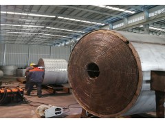 3、配回補板:為*證修理的質量,從換熱器上每層割下來的板料,不再使用,重新配回補板,另配的回補板要用與換熱器螺旋板相同的材料和板厚,其周邊應比換熱器上每層割出的孔分別大15mm?20mm,且也為橢圓形,并做成和換熱器每層螺旋板弧度相一致的弧形。
