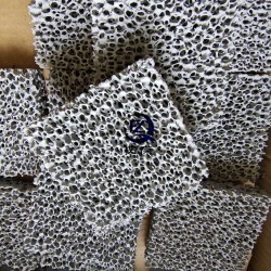經過高溫燒結后的泡沫陶瓷過濾片,在高溫澆注條件下,不會產生氣體和有害物質。主要成分為碳、硅、石英等耐火材料。