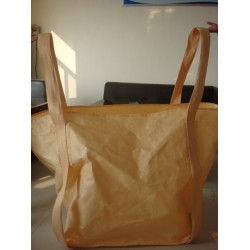 用叉車或吊車將集裝袋吊起對準料槽的繩索