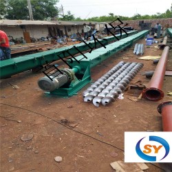 螺旋輸送機(jī)主要包括螺旋、機(jī)槽、吊架、進(jìn)料及卸料口、傳動(dòng)裝置等部分,該機(jī)槽采用鋼管輸送筒,剛性大、密封性好,無(wú)泄漏,改善工作環(huán)境。傳動(dòng)裝置選用電機(jī)直聯(lián)型擺線針輪減速機(jī),功率大、噪音小、結(jié)構(gòu)緊湊、傳動(dòng)可靠。整機(jī)可水平或傾斜安裝,占地面積小,安裝,使用方便。